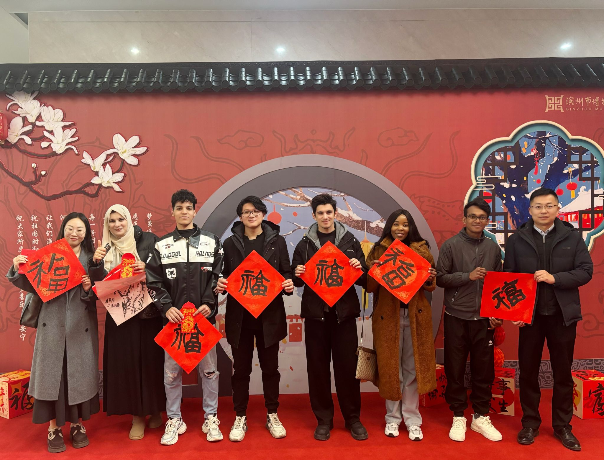 瑞雪迎祥,年意盎然。1月22日,正值农历小年,市外办联合市博物馆成功举办“丝路鲁约•文化贺岁——博物馆里的中国年直播活动”,我校留学生们受邀参加此次活动。活动伊始,主持人详尽介绍了中国北方小年的传统习俗。从古代庄重肃穆的祭祀天地、祭奉神明仪式,到现代北方广为流传的除尘、吃糖瓜等民俗活动,全方位展现了传统节日文化在历史长河中的传承与演变。 活动在“书法之美:写春联” 环节拉开序幕,书法老师亲自示范毛笔的握持方法与书写技巧。...